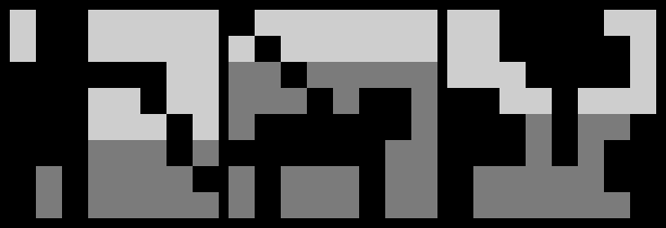 In this first week we focused on staying within the constraints of icon sized images. For this one we were to use only 8 pixels by 8 pixels and no color, just values of black to white. I made these three icons as part of the story "Walking the dog at the park."