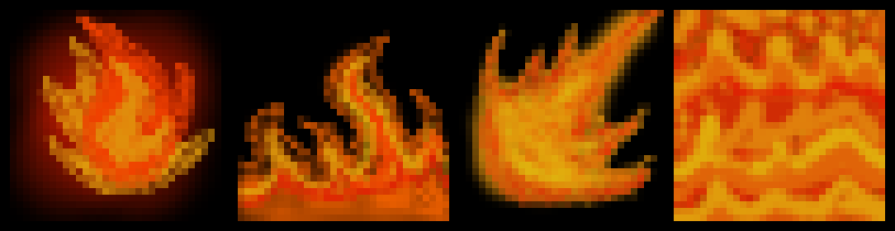Here we started expanding beyond hard edge tools (pencil) and started using soft edge tools like the brush and the air brush. This challenge was for "four fire based game icons using the brush and airbrush."