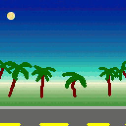 This sunset image is from a challenge where by we were asked to create a sunset scene to practice animating color changes over time. I usually like to stray from the basic instructions at least a little bit so I added palm trees in the foreground that fade to black for a little extra fun.