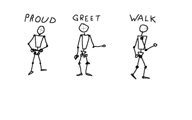 This week was almost entirely sketches, with a focus on studying the human form. The goal was to slowly improve sketching skills by doing a number of them and spending no more than 5 minutes on any individual sketch. Here was an attempt to portray various moods using the same skeleton.